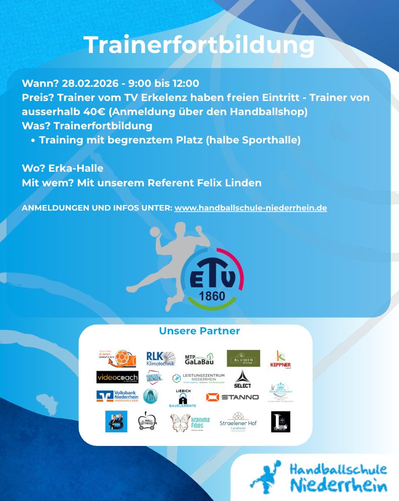 40,00 € für externe Trainer (Anmeldung wie gewohnt über den Shop der Handballschule)