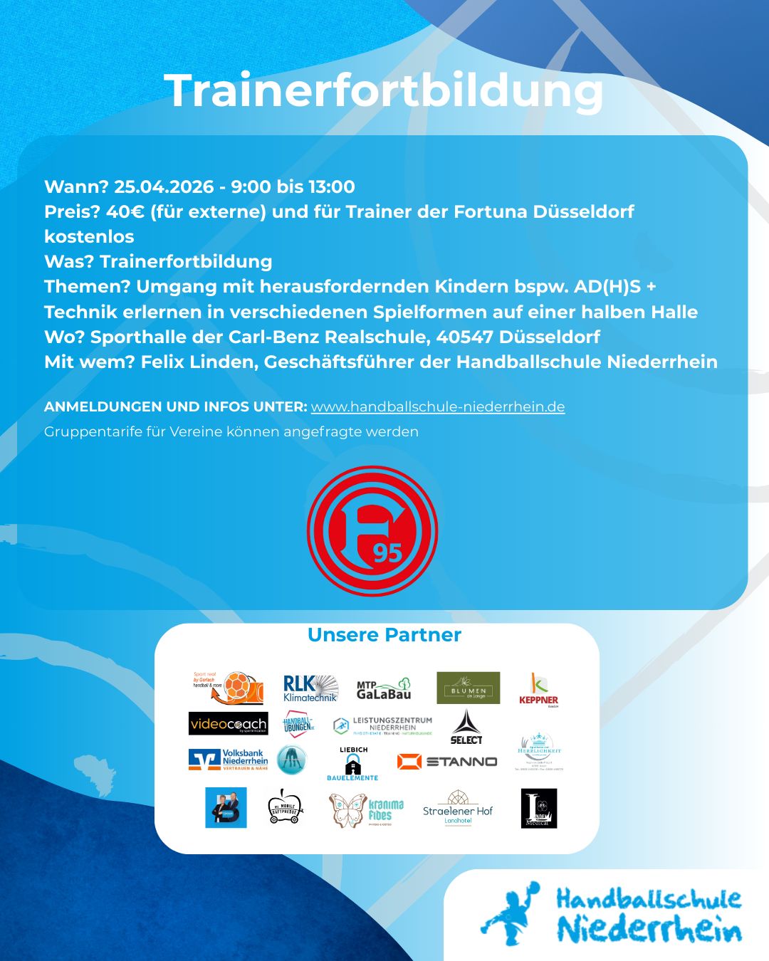 40,00 € für externe Trainer (Anmeldung wie gewohnt über den Shop der Handballschule)