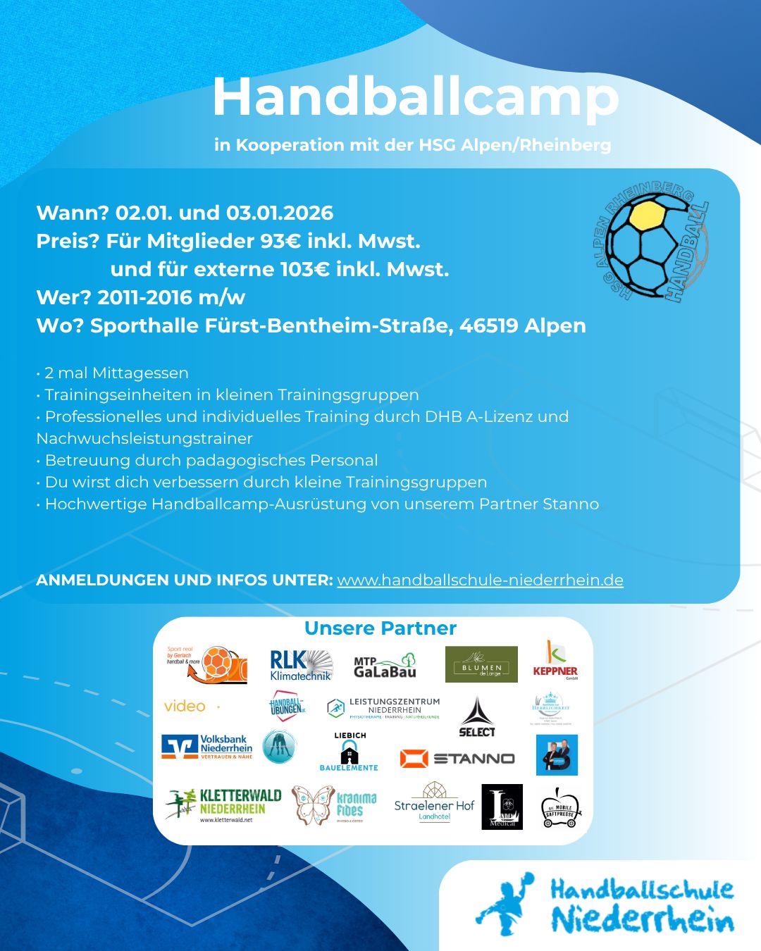 - 93,00 € für Mitglieder der HSG Alpen/Rheinberg
